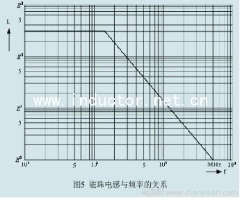 在低頻時,一般磁珠的相對導磁率都很大(大于100),但在高頻時其有效導磁率只有相對導磁率的幾分之一,甚至幾十分之一。因此,磁珠也有截止頻率 的問題,所謂截止頻率,就是使磁珠的有效導磁率下降到接近1時的工作頻率fc,此時磁珠已經(jīng)失去一個電感的作用。一般磁珠的截止頻率fc都在 30~300MHz之間,截止頻率的高低與磁珠的材料有關,一般導磁率越高的磁芯材料,其截止頻率fc反而越低,因為低頻磁芯材料渦流損耗比較大。使用者在進行電路設計的時候,可要求磁芯材料的提供商提供磁芯工作頻率與有效導磁率的測試數(shù)據(jù),或穿心電感在不同工作頻率之下的曲線圖。圖5是穿心電感的頻率曲線圖。